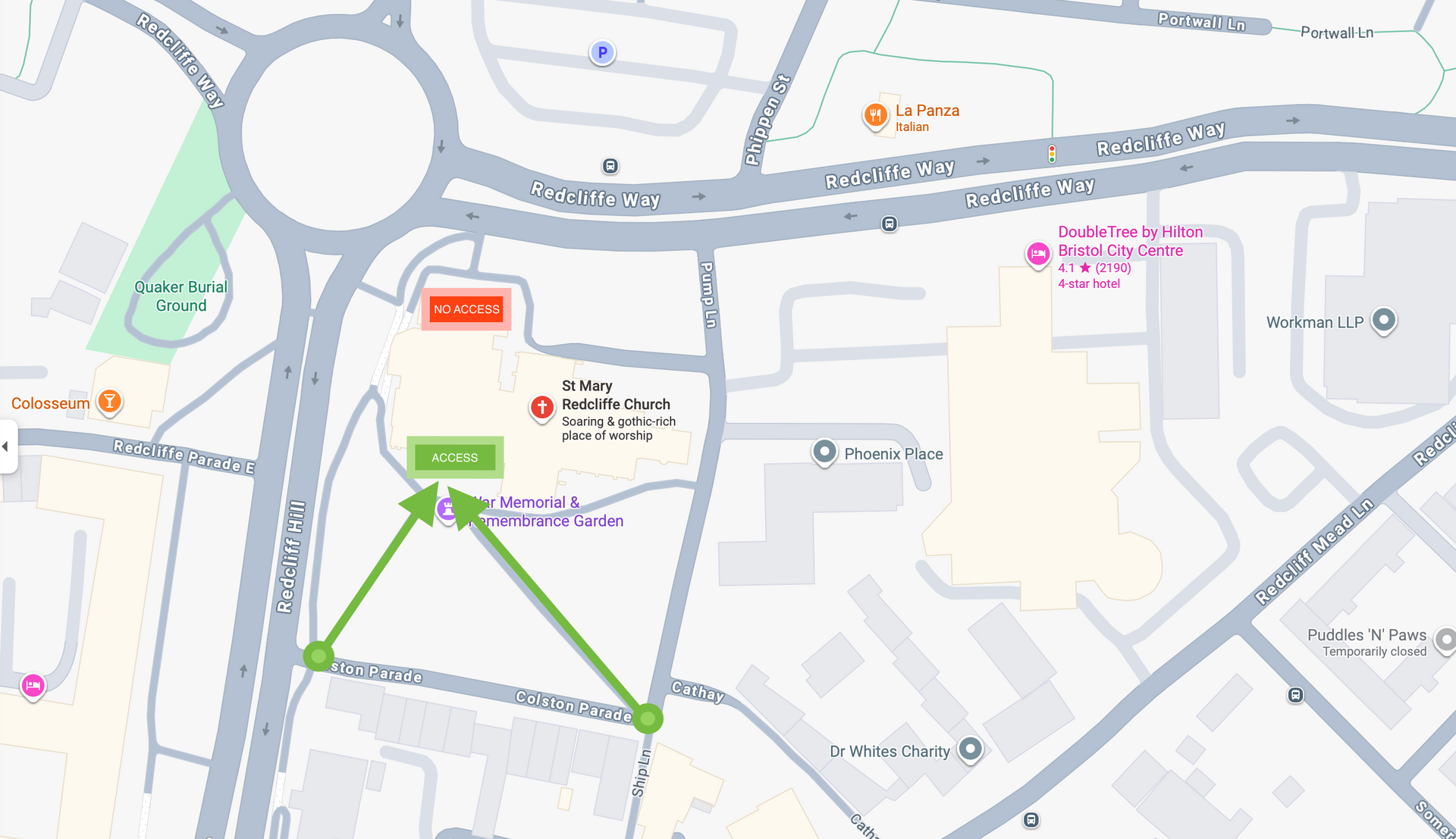 Portwall Lane Car Park (BS1 6AL) and Redcliffe Parade Car Park (BS1 6SW) are both a very short walk away from the Church.